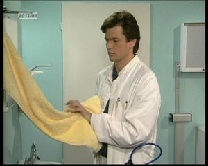 Wie man auf dem Bild sehen kann, wurde in der Folge 551 auch endlich einmal die Seite der Praxis gezeigt, die man sonst nie zu sehen bekam und wo man sich oft gefragt hatte, was denn da nur zu sehen war. Man erkennt, dass es sich um ein Waschbecken handelt, wo Dr. Gundlach sich die Hände waschen und desinfizieren konnte.
